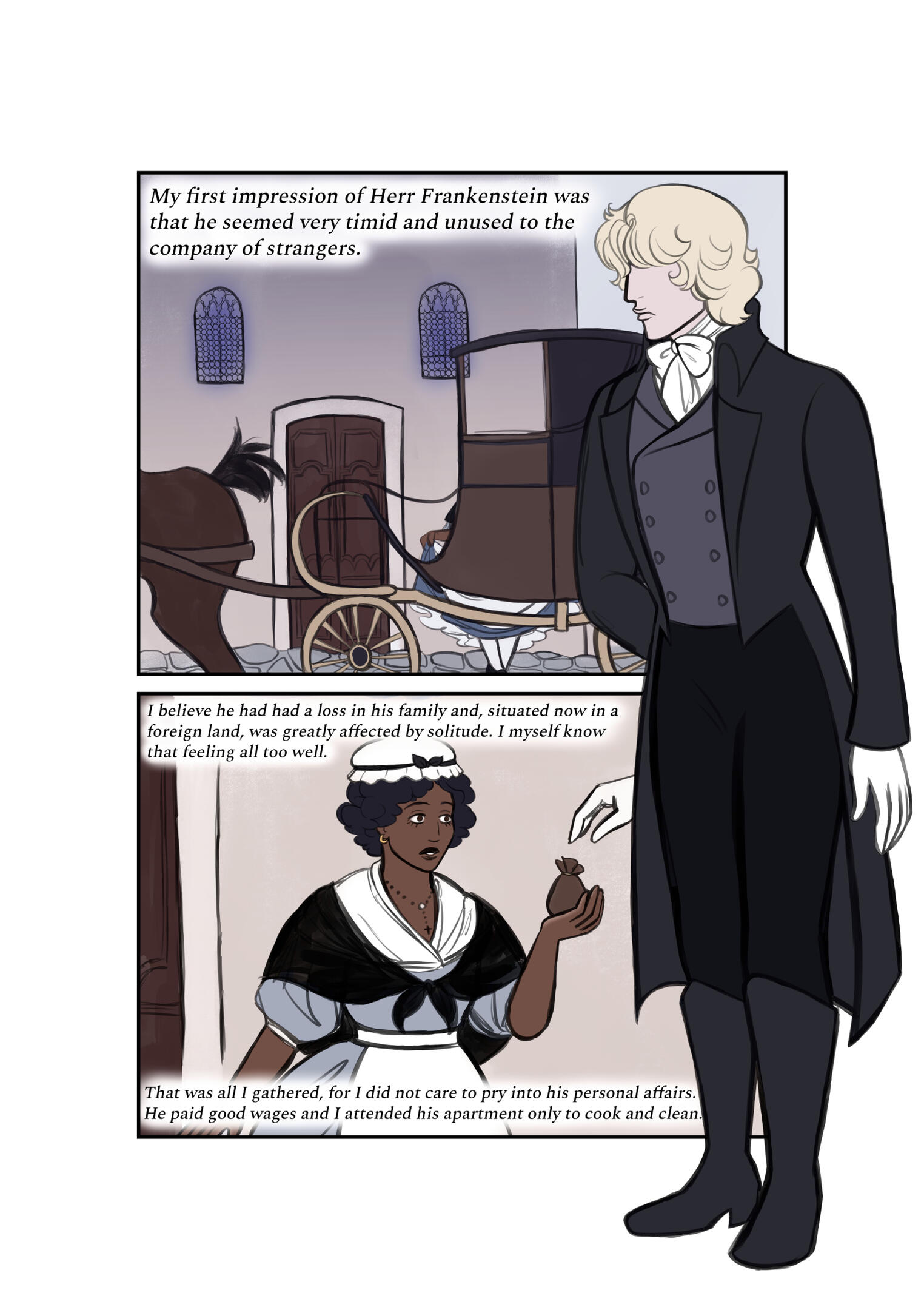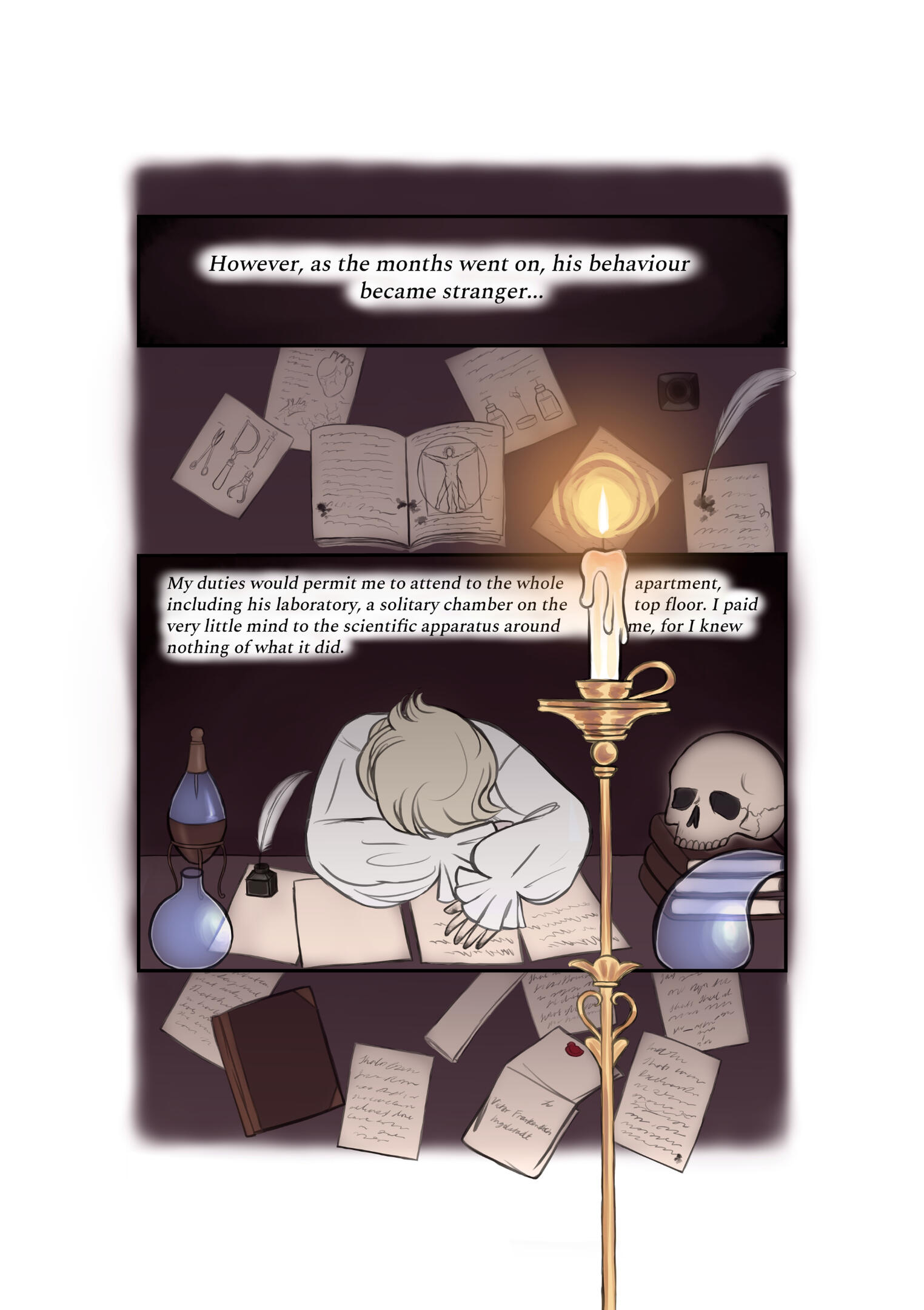 A Solitary Chamber is a 27-page Frankenstein adaptation, expanding on the perspective of Victor Frankenstein's maid.